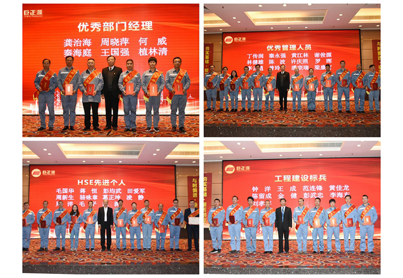 黨總支書記張寶業在會上宣讀了公司2018年度先進集體和先進員工的表彰決定。本次年度表彰共設“杰出貢獻獎”、“先進部門”、“先進班組”、“優秀部門經理”、“優秀管理人員”、“優秀員工”、“工程建設標兵”、“HSE先進個人”、“優秀學員”、“十年資深員工榮譽獎”等10個獎項,共有94個先進集體和先進員工獲得通報表彰。公司領導分別為獲獎集體及個人頒發獲獎證書,感謝他們過去一年的努力拼搏,為公司持續健康發展做出了積極貢獻。
