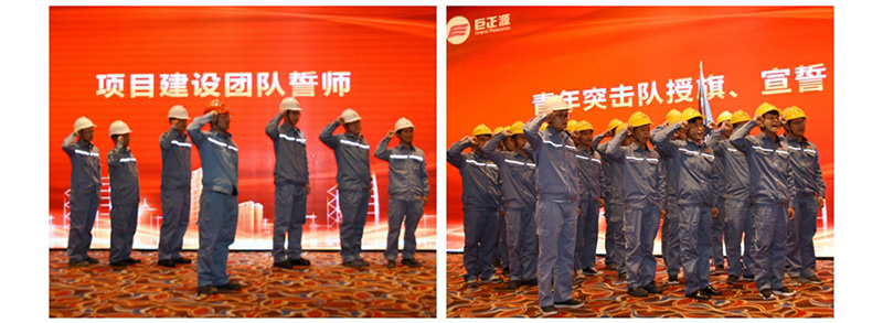 隨后,會議舉行了科技公司丙烷脫氫制高性能聚丙烯項目建設團隊誓師儀式、青年突擊隊授旗和宣誓儀式。各宣誓人團結一致,帶領團隊,堅決按照公司要求的時間節點,按時按質完成任務,生產出合格的產品。青年突擊隊將弘揚“吃苦在前、樂于奉獻、沖鋒一線、爭創一流”的精神,助力推進工程建設。