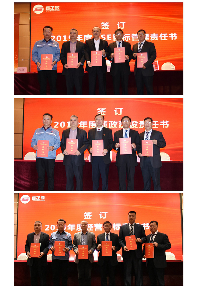 最后,巨正源公司與各子公司分別簽訂2019年度HSE目標管理責任書、2019年度廉政建設責任書,與經營中心、各子公司簽訂年度目標責任書。