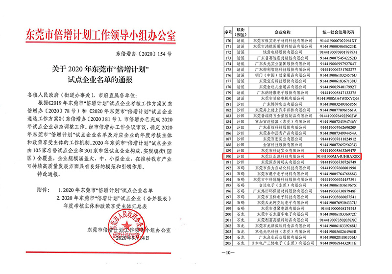 “倍增計劃”是東莞市委市政府按照“選好選優、培優培強”的原則,選取一批存量優勢企業作為試點進行重點培育,力爭用3-5年時間,推動試點企業實現規模和效益的倍增。特別是疫情期間,東莞市出臺多項政策從企業擴容、強化管理、優化服務等多方面增強倍增動能,做大做優“倍增企業”。“倍增企業”也展現強大的韌性,成為推動我市產業可持續高質量發展的主力軍。